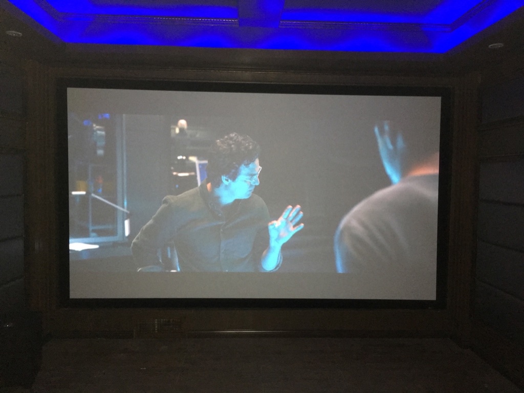 演示時,銷售人員輕輕敲擊茶幾,便可啟動觀影模式:客廳區域燈光逐漸暗下來,只留筒燈的余光照明,接下來,電視機柜、激光電視、功放機依次自動開機,播放器自動播放演示片段,一氣呵成。在這些設備逐個啟動的同時,背景音樂系統也在同步進行語音講解。