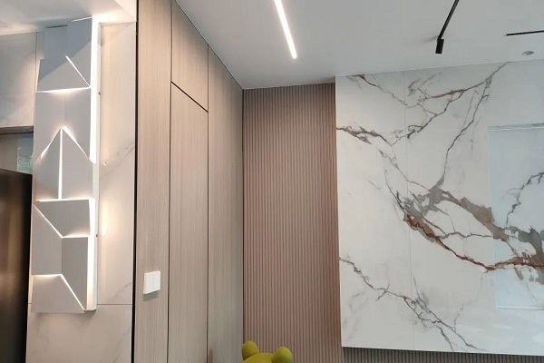 客廳區域:這是主人與家人常一起待的地方,所以根據業主的生活習慣以及喜好,設計了部分燈光場景,回家模式、明亮模式、觀影模式等